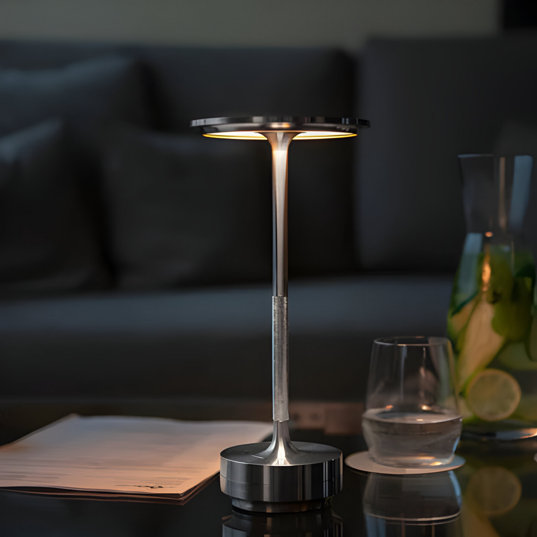 This wireless table lamp provides soft lighting in your bedroom, living room, or on your desk. Thanks to its minimalist design, it discreetly blends into your decor and offers flexible light exactly where it's needed.